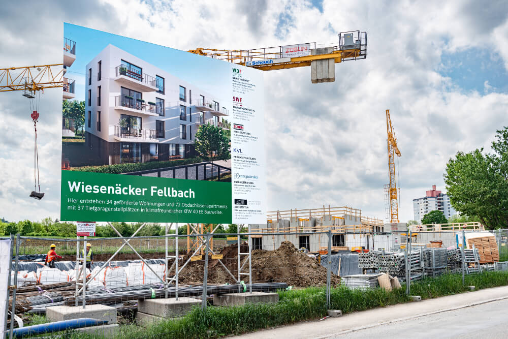 Für das Bauprojekt Wiesenäcker in der Ernst-Heinkel-Straße in Fellbach wurde eine europaweite Ausschreibung von Planungs- und Bauleistungen für den Neubau von Obdachlosenapartments und öffentlich geförderten Wohnungen im Verhandlungsverfahren nach VOB/A mit Teilnahmewettbewerb durchgeführt. Durch den straffen Zeitplan des Bauvorhabens wurde bereits Ende Oktober 2021 der Zuschlag an die Firma Ed. Züblin AG erteilt, sodass Ende November der Bauantrag gestellt werden konnte.