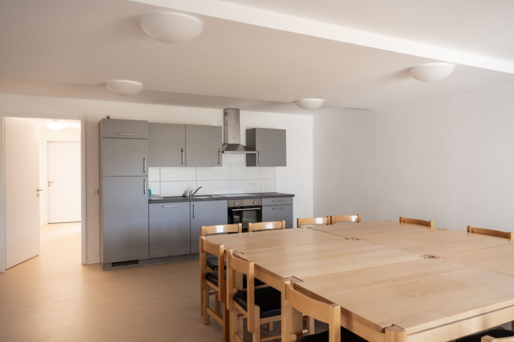 Es wurden einige Überlegungen zusammengetragen, welche Kriterien die neue Wohnungslosenunterkunft erfüllen muss. Von Anfang an stand fest, dass für eine menschenwürdige Unterbringung ein Einzelzimmer eine eigene Nasszelle beinhalten sollte. Außerdem sollte ein Sozialbüro integriert werden, um die soziale Arbeit vor Ort zu erleichtern und ein Gemeinschaftsraum zur Verfügung stehen, damit verschiedene Angebote direkt in der Unterkunft stattfinden können. Ein enger Austausch mit dem:der zuständigen Mitarbeiter:in rund um das Thema Wohnungslosigkeit in Ostfildern hat das Projekt konkretisiert und vorangebracht. Im Laufe der Entwicklung wurde eine Machbarkeitsstudie bei den Zoll Architekten in Auftrag gegeben. Damit war der Grundstein für die Entwicklung des Projekts „Wiesenäcker“ gelegt.